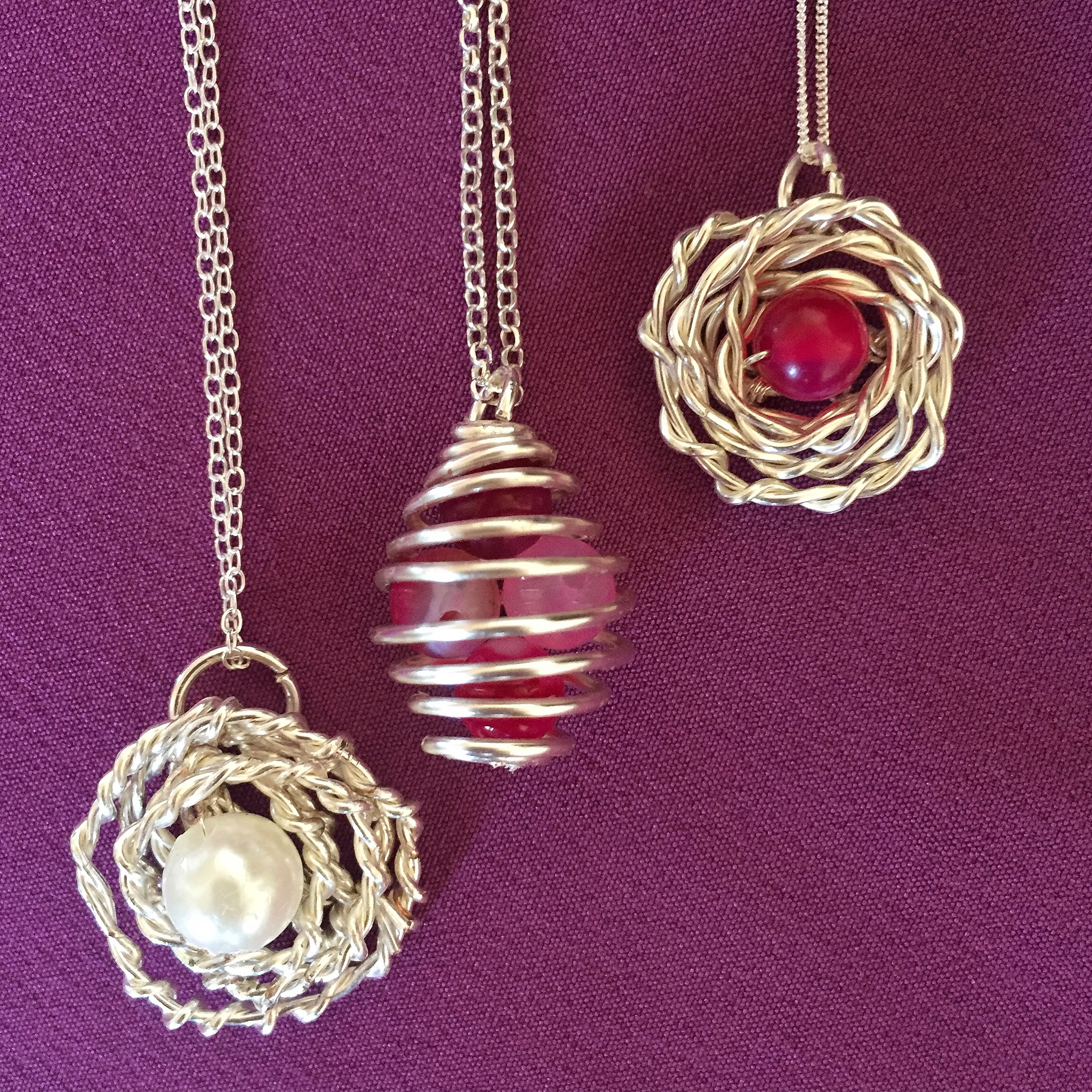 When I got home I turned to YouTube for help on what to do, and after lots of trial and error (and buying another pair of pliers, I had no idea there were so many different kinds!) I’ve managed to make the pendants below. The one in the middle has multiple beads inside, I’d like to make another one but with lots of smaller beads inside, but at the moment I have no idea how to do it so they don’t all fall out! I guess it will just be trial and error. The other two are each made up by folding a piece of wire in half and then twisting together. The wire is either 0.8mm or 1mm thick – I can’t remember and have lost the packet, oops!
